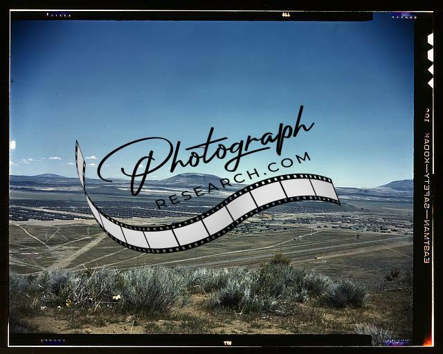 Original caption card speculated that this photo was part of a series taken by Russell Lee to document Japanese Americans in Malheur County, Ore. Re-identified as Tule Lake because of similarity to LC-USW36-789, which shows Abalone Mountain.