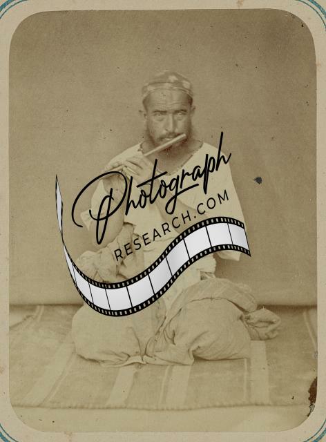 Summary: Photograph shows a man playing a clarinet-like instrument.