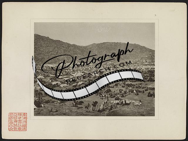 Summary: Photomechanical prints show Turkish soldiers at ruins of stone mortars; train station on the Hejaz Railway at al-?Ula in Saudi Arabia with Shammar gendarmes; and train tracks leading in a valley at al-?Ula.
