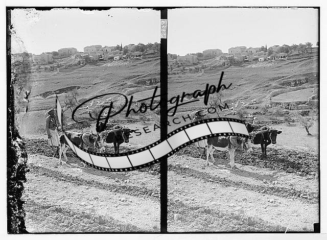 Arab plowing w/ donkey,cow,Middle East,Agriculture,1898-1946,American Colony
