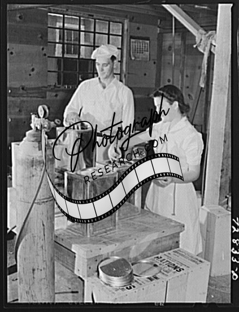 Title: Turlock, California. Hermetically sealing cans of dehydrated cabbage