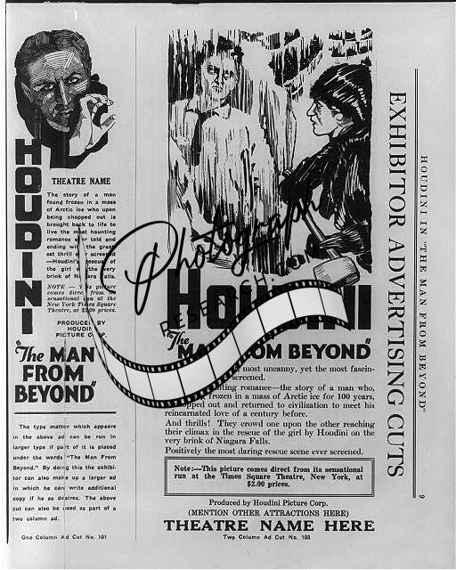 Houdini in 'The Man from Beyond'. Exhibitor advertising cuts,c1922,poster ad