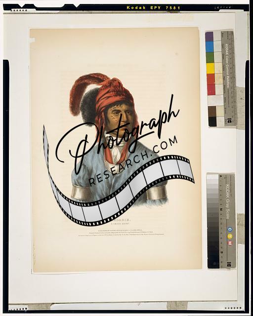 Title: Tustennuggee Emathla or Jim Boy, a Creek chief / drawn, printed and coloured at I. T. Bowen's lithographic establishment, No. 94 Walnut St.