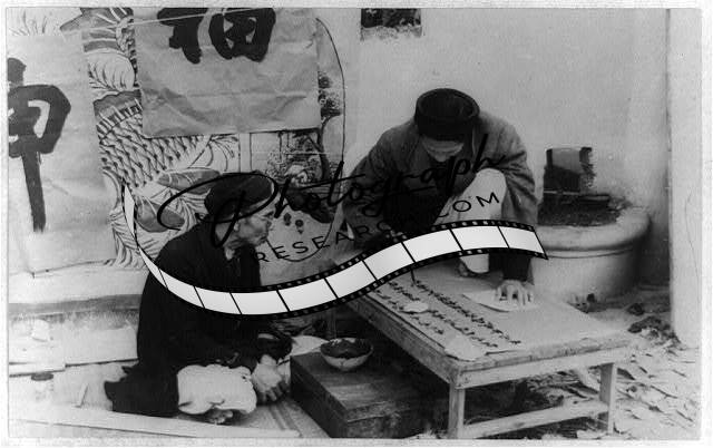 Two Vietnamese men,painting calligraphy,writing,art forms,Hanoi,Vietnam,1951