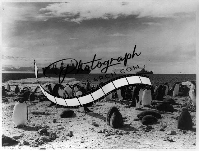 Penguins,rookery,Coast Guard icebreaker Northwind,Cape Hallett,Antarctic,1956