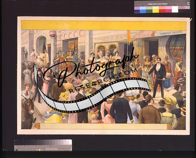 Crowds,circus sideshow viewing,women,men,costumes,c1900