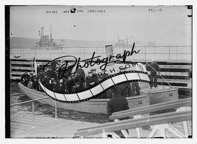 Sailors in boat,coming ashore for Xmas leave,Christmas,December 22,1909