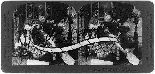 Photo of Stereograph,Drawing Papa's Picture,c1906,Misbehaving Children,Drawing