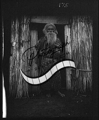 Ainu man holding staff,doorway,hut,villages,entrances,thatched,A Genthe,1908