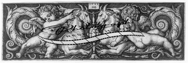 Ornament w/ two genii riding on chimeras,Cherubs,Goat Heads,Dragon Tails,1544