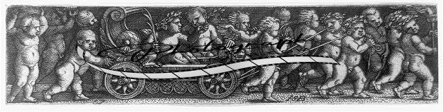 Triumphal procession of children,Cherubs pulling carriage of cherub emperor