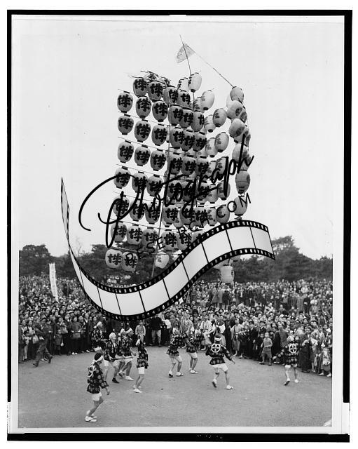 Japanese, Photograph shows large crowd gathered to watch lantern dance on the 1st annual "Cultural Day" celebration at the Imperial Palace plaza.