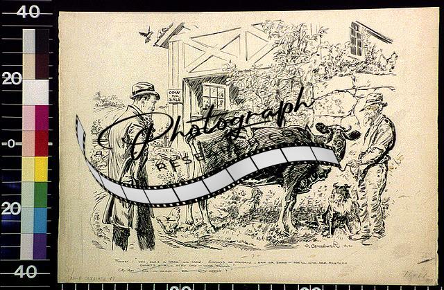 Farmer,Sundays,Rain or Shine,Cow,Farm Life,Selling,Livestock,c1920,Cartoon