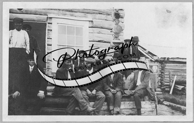 Indigenous peoples outside of log building,Nome,Alaska,AK,1900-1916,Group