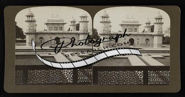 Title: [Two men looking at Akbar's tomb]