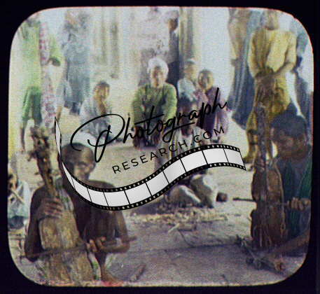 Men squatting,Sidewalk,Playing Stringed Instruments,India,1895,William Jackson