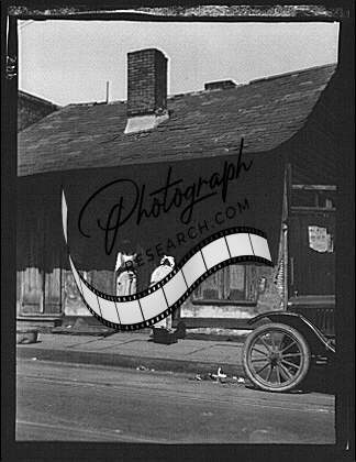 Two women,buildings,streets,doorway,New Orleans,Louisiana,LA,Arnold Genthe,1920