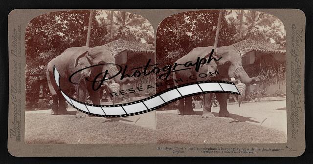 Kandyan chief's big pet--elephant's keeper playing with the docile giant--Ceylon