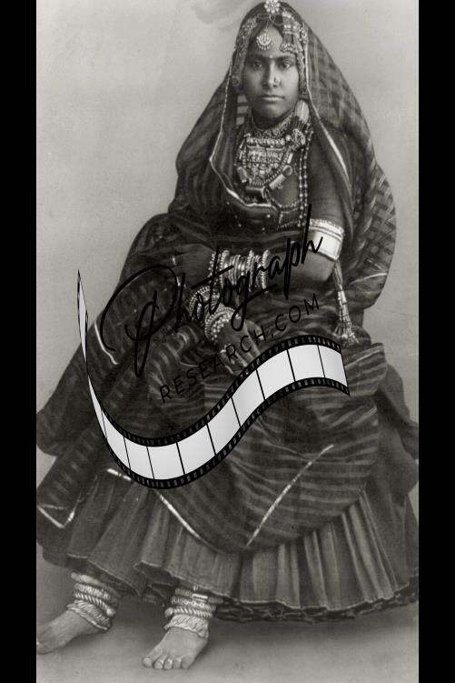 Woman wearing court dress,Indian jewelry,1890-1923,India