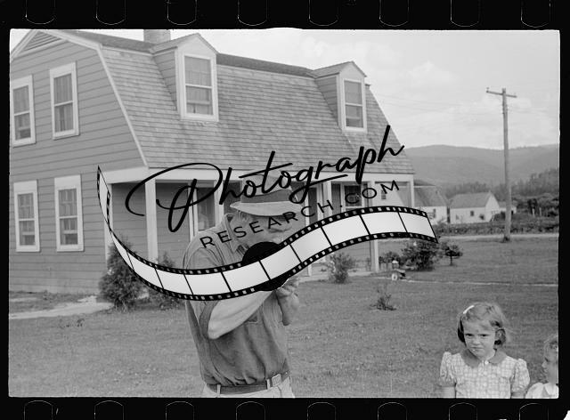 Title: Homesteader returning from work in the Dimension lumber plant. Tygart Valley Homesteads, West Virginia