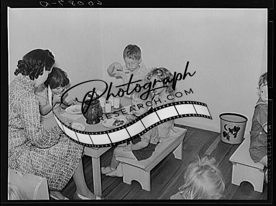 Title: Nursery schoolchildren at lunch. Tygart Valley Homesteads, West Virginia