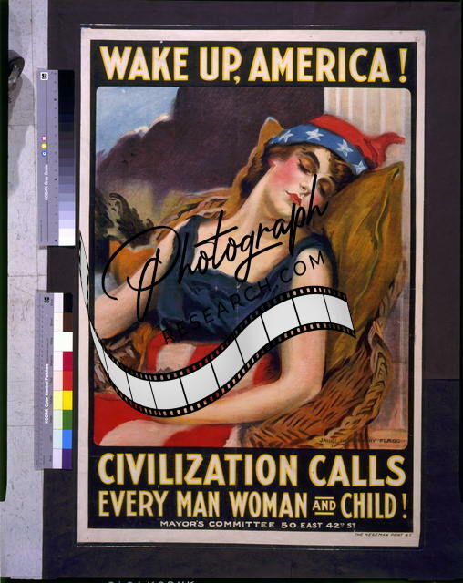 World War I,WWI,Wake up America,Woman dressed in stars & stripes,1917,Asleep