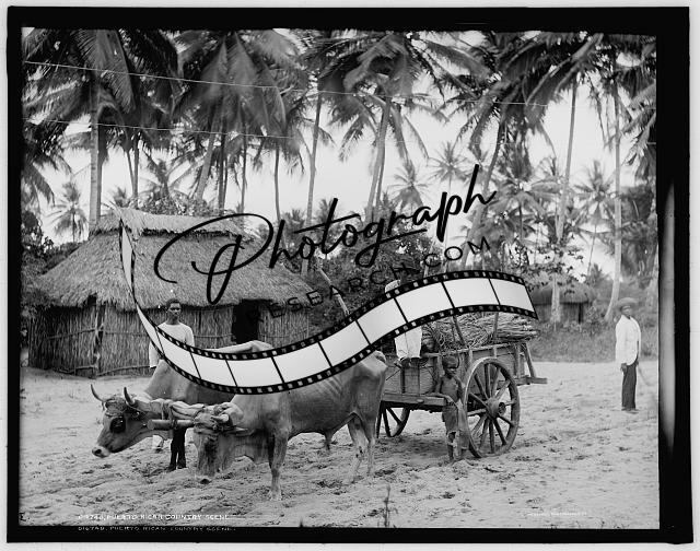 Puerto Rican country scene,ox teams,dwelling,huts,structures,San Juan,Rico,c1903