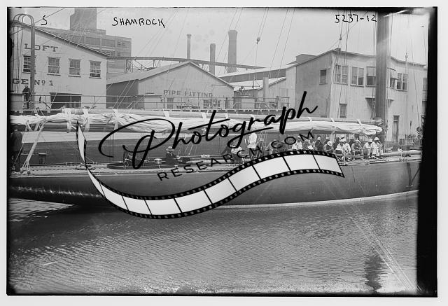 SHAMROCK,water vessels,boats,ships,docks,piers,buildings,smokestacks,roads,crowd