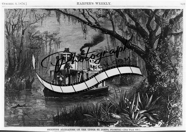 Shooting Alligators on the Upper St. Johns,Florida,FL,1874,river boat