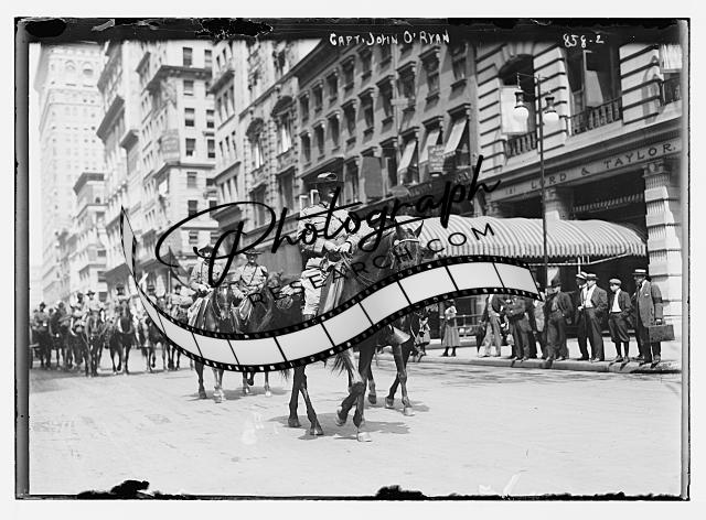Capt. John O'Ryan,on horse-back,leading 1st Battery to war game,New York,1909