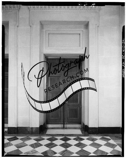 Title: 55. INTERIOR, FIRST FLOOR, WING 1100 EAST, AUDITORIUM (CONFERENCE HALL) FOYER, STAIRS M - U.S. Department of the Interior, Eighteenth & C Streets Northwest, Washington, District of Columbia, DC