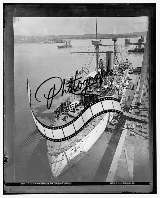 USS Charleston,piers,wharves,cruisers,docks,San Francisco harbor,California,1889