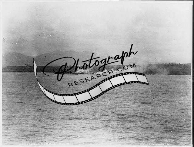 U.S.S. NEW YORK bombarding Aguadores,War of 1898,Ship,Cuba Aguadores