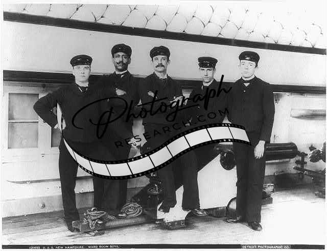 U.S.S. NEW HAMPSHIRE,5 ward room boys,c1898,Marines,Ships,Navy