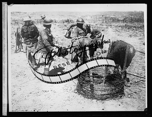 Wire engtanglements & French helmets,World War I,WWI,Military,c1916
