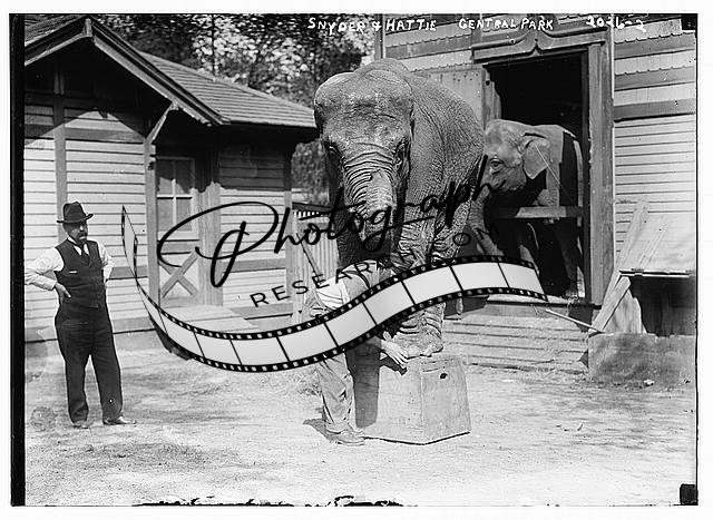 Bill Snyder,1864-1934,Hattie in Central Park,Snyder is in front of the elephant.
