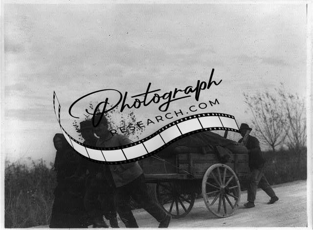 Returning Home,Sacile,Italy,World War,People pulling cart,c1918,WWI,Repatriation