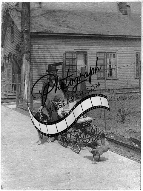 The Gardner's Pets,Man,child in baby carriage,dog,goose