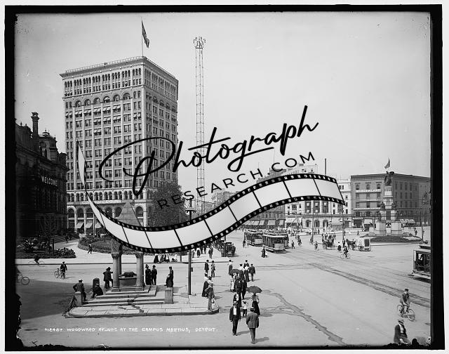 Woodward Avenue,Campus Martius,fountains,street railroads,Detroit,Michigan,1890