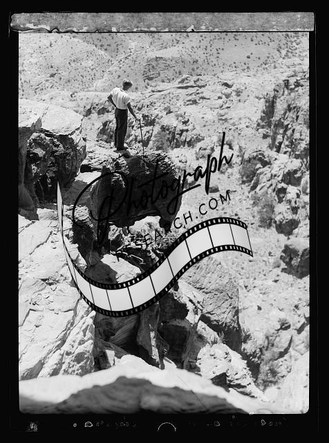 Title: Petra. Umm el-Biyarah. (Earliest Nabatean stronghold). Final ascent showing climber scaling a difficult pass
