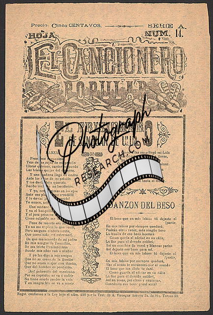 Back cover: Se hayan de venta al precio de diez centavos en la Tip. de la Test. de Antonio Vanegas Arroyo y en la 'LiberÃa [sic] Teatral' sitada [sic] en la Ave. Hidalgo 55, Prop. Juan Lechuga, México, D.F.