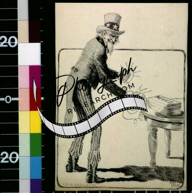 Uncle Sam sending electric charge,Mexico,Electricity,c1915,McKee Barclay