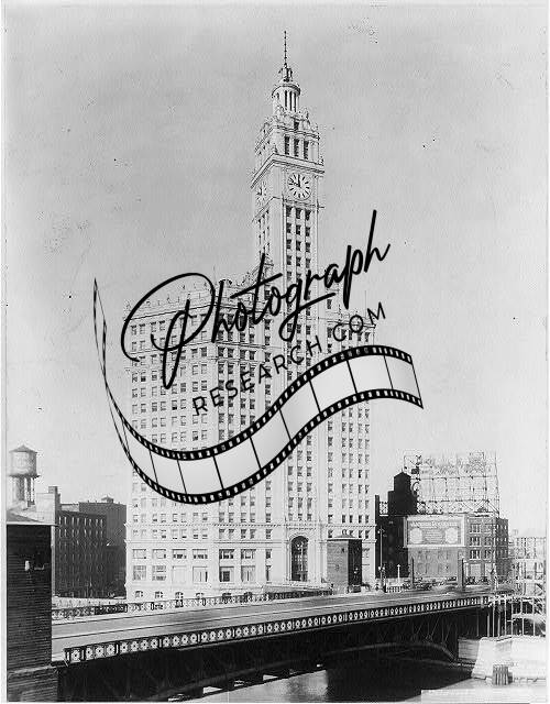 Wrigley Building,Chicago,Illinois,IL,large clock-tower,bridge,Architecture