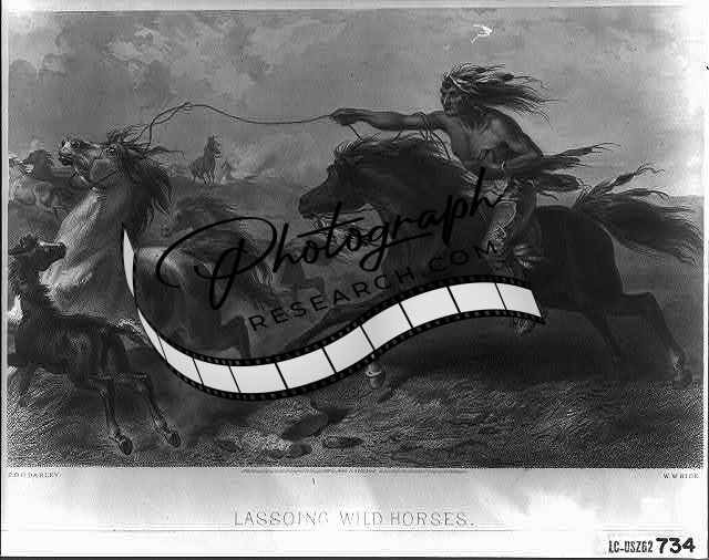 Lassoing Wild Horses,Indian on Horseback,Native American