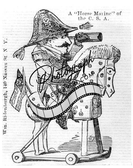 A 'Horse Marine' of the C.S.A,1861,Anti-Confederacy Cartoon,Rebel on hobby horse