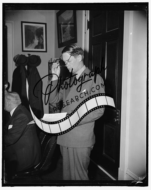 Title: Uncle Sam 'paid' for place cards at this Solon's luncheon. Washington, D.C., March 29. Place cards at the luncheon given by Rep. Lawrence Lewis, democrat of Colorado, for his friends at the Capitol today were unusual, to say the least. On the back of the cards he left no doubt in the minds of his guests that the government footed the bill for them. 3-29-39