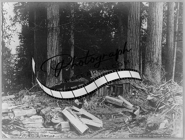 Cedar Bark Cabin in Lumbering Camp,Washington,c1902,Log Cabin