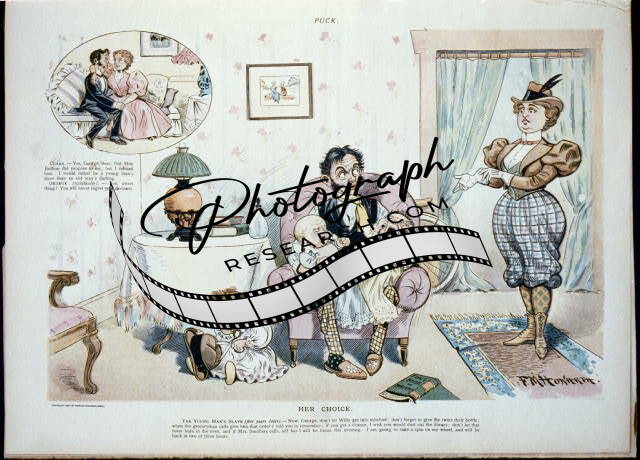 Her Choice,The Young man's slave,1897,Caricature,women's suffrage,babies