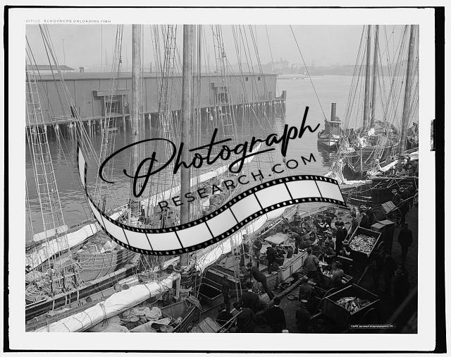 Schooners unloading fish,fishing industry,boats,piers,wharves,shipping,c1904
