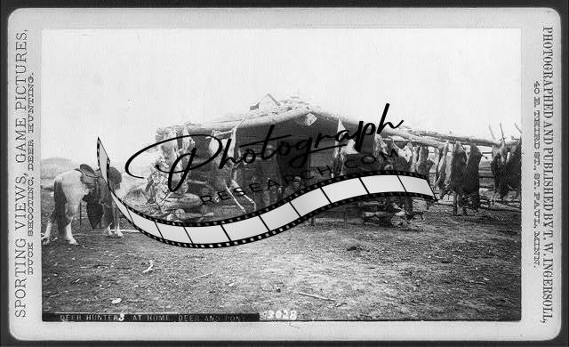 Deer hunters,home,pony,hunting,dwellings,game,cabins,men,T W Ingersoll,c1890